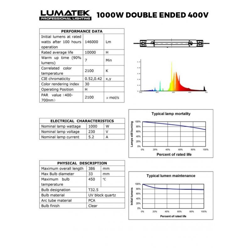 Double ended vysokotlaká výbojka Lumatek 1000W HPS na květ. Zvýšený, stabilní, rovnoměrný a nejlépe využitý světelný výkon s červenožlutým spektrem.