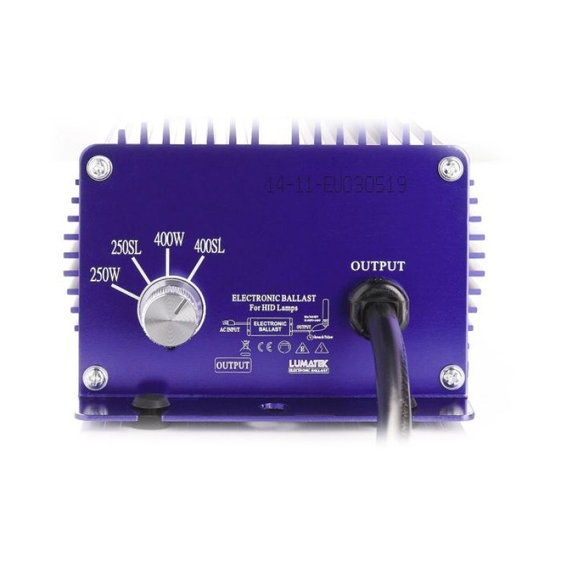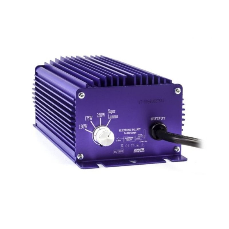 Elektronický předřadník Lumatek 250W je vhodný pro pěstování rostlin pod sodíkovým nebo metalhalidovým světlem ve fázi růstu i květu. Se čtyřpolohovou regulací můžete ovládat světelný výkon v rozpětí 150-175-250-275W. Regulovat výkon lze pouze u stmívatelných výbojek.