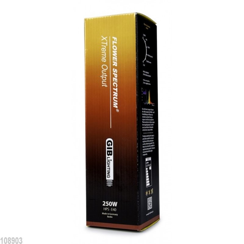 Vysokotlaká sodíková výbojka GIB Lighting Flower Spectre HPS XTreme Output 250W, 230V. Nadstandardní účinost 132lm/W a PAR 440 umol/s.
