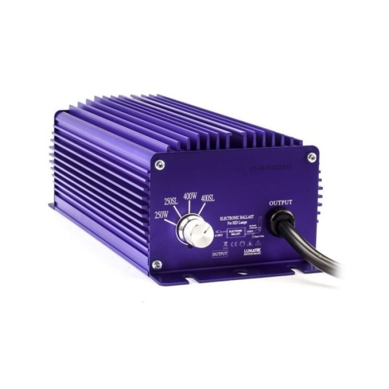 Vysokofrekvenční předřadník Lumatek 400W se čtyřpolohovou regulací, elektronický předřadník pro stmívatelné sodíkové i metalhalidové výbojky. Regulace v rozpětí 250-440W.