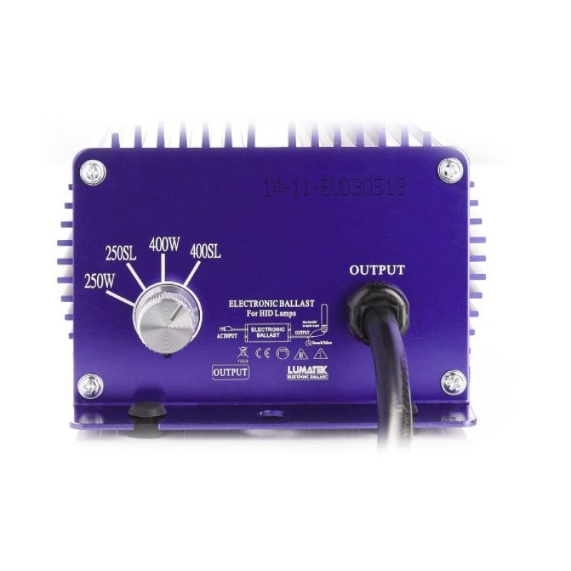 Kvalitní digitální předřadník Lumatek 400W s IEC konektorem je určen pro pěstování rostlin pod umělým HPS nebo MH osvětlením. Předřadník umožňuje čtyřlevelovou regulaci světelného výkonu v rozpětí 250-275-400-440W. Ochrana proti přehřátí nebo zkratům je samozřejmostí.