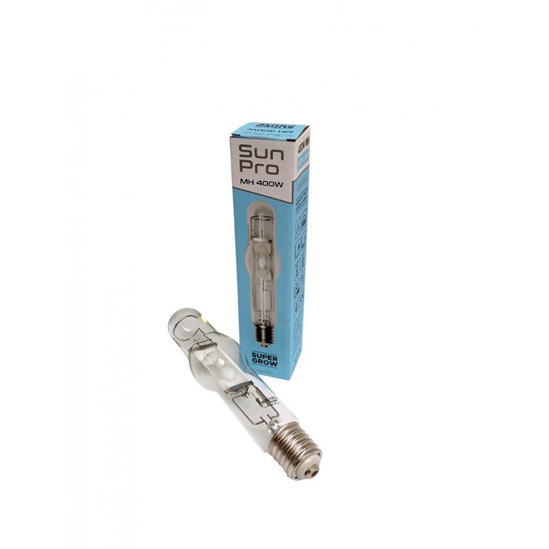 Metalhalidová výbojka SunPro Super Grow 400W MH. Posílené modrobílé spektrum, vhodná na růstové období, super cena.