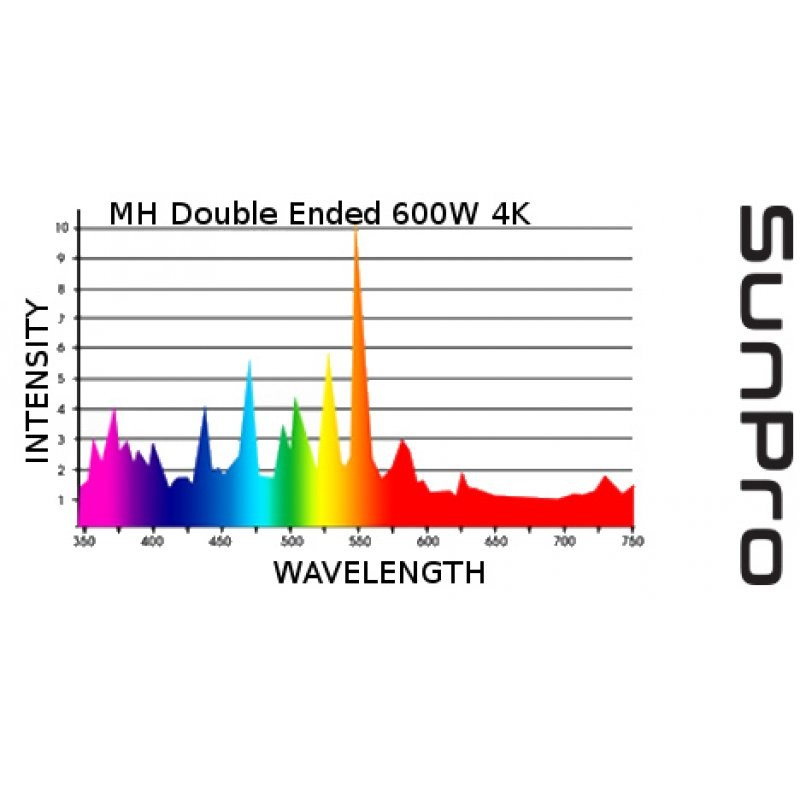 Metalhalidová Double Ended výbojka SunPro DE 600W MH 4K s denním (daylight) světlem. Vhodná pro všechny fáze vývoje rostliny.