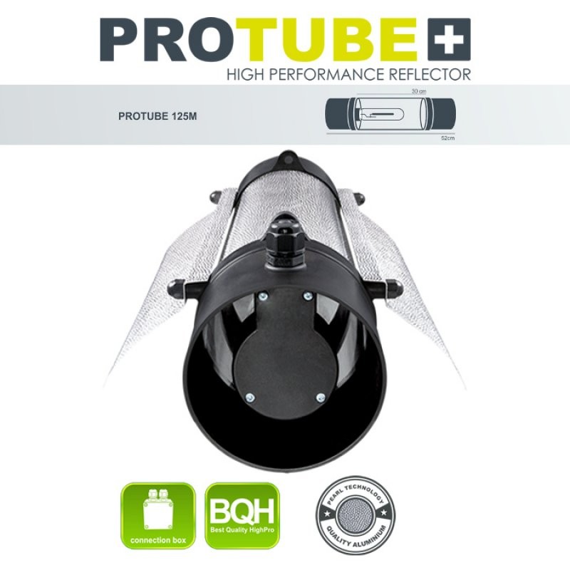 Hlavní předností tohoto reflektoru je jeho konstrukce, která zajišťuje maximální ochranu celé výbojky a hlavně patice. Povrch z kvalitního hliníku je upraven patentovanou Pearl technologií a garantuje zvýšenou odrazivost. Profesionální stínidlo s odtahem PROTUBE 125 M včetně plastových přírub pro vzduchotechniku.