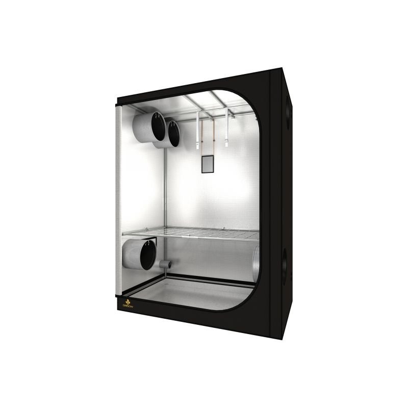 Široká verze dva metry vysokého pěstebního boxu Dark Room 150W R3.0 je určena pro indoor kultivaci rostlin pod jednou 600W sodíkovou nebo 400W metalhalidovou výbojkou. Součástí všech stanů od Secret Jardin jsou balíčky s praktickým příslušenstvím.