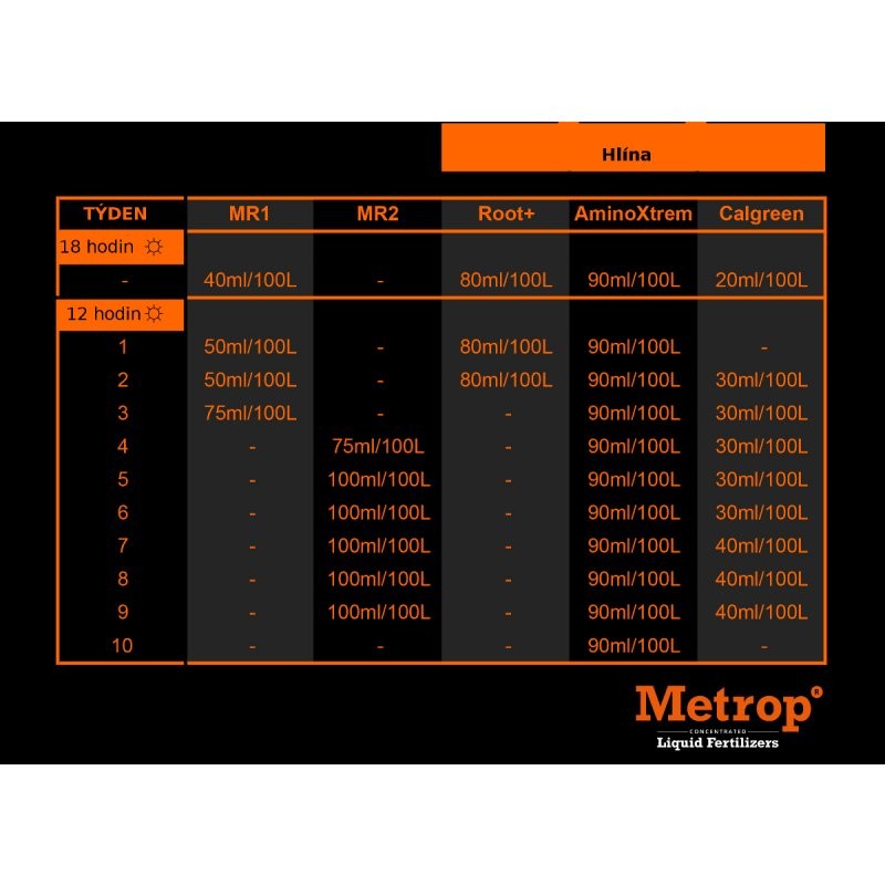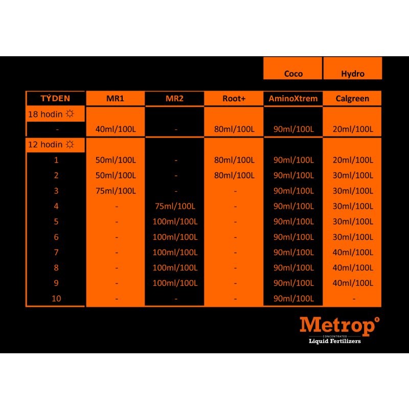 Hnojivo Metrop Amino Xtrem Bloom stimuluje přednostně tvorbu kvalitních plodů, současně pomáhá rozvoji zelených listů. Velmi rychlý, přímo vstřebatelný, stimulátor obsahuje všechny nejdůležitější aminokyseliny a vitaminy potřebné pro explosivní vývoj květu v jakémkoliv pěstebním médiu.