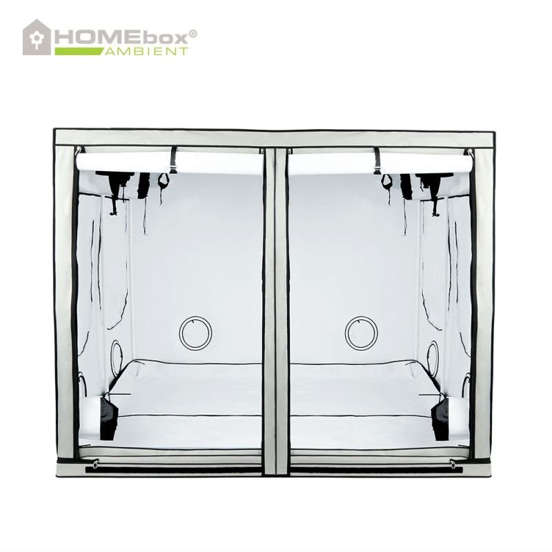Velmi prostorný box splňuje vysoké nároky indoor pěstitelů také díky ideálnímu řešení ventilace, rychlým přístupem nebo světelně nepropustným zipům. Odnímatelná a nepropustná podlaha, síťka proti hmyzu nebo pevné plátno, to je klasický Homebox standard. Po uzavření je pěstební stan Homebox Ambient Q240 absolutně světelně nepropustný.