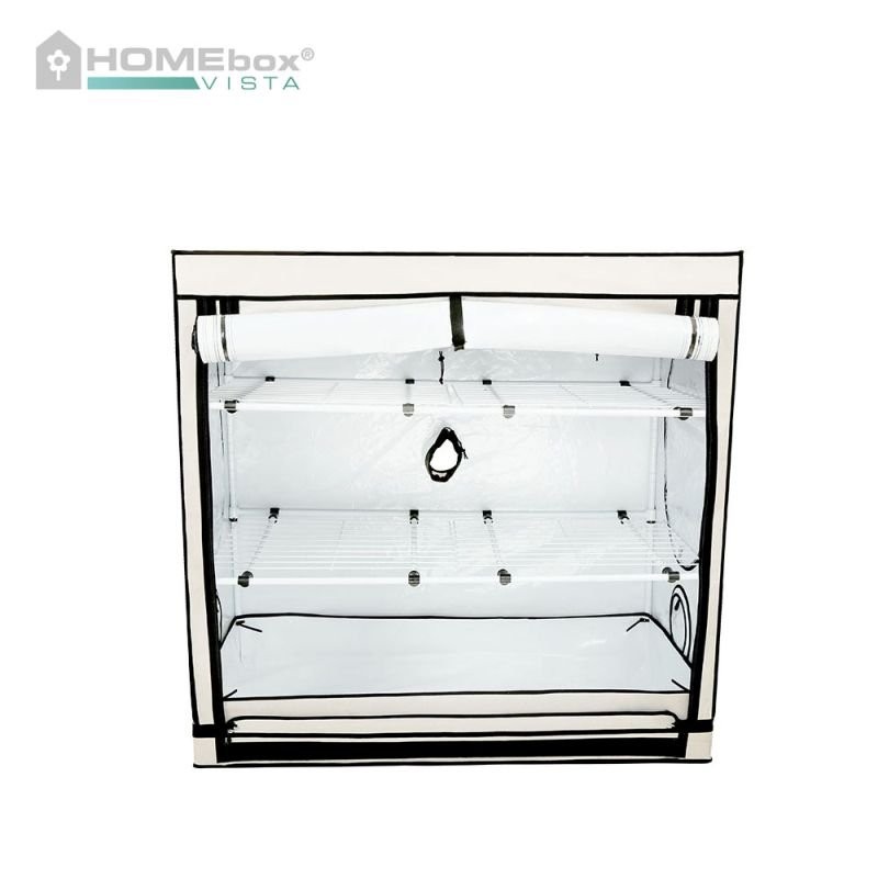 Elegantní Homebox Vista Medium je podobný například konkurenčním Dark Propagator od Secret Jardin a konstrukčně vychází ze staršího Cloneboxu. Moderní zpracování tohoto stanu nabízí zajímavé řešení pro vyplnění nevzhledného nebo neobsazeného prostoru v bytě opravdu efektivním způsobem. Hlavní výhodou je možnost rozdělit stan pomocí poliček na tři pěstební plochy.