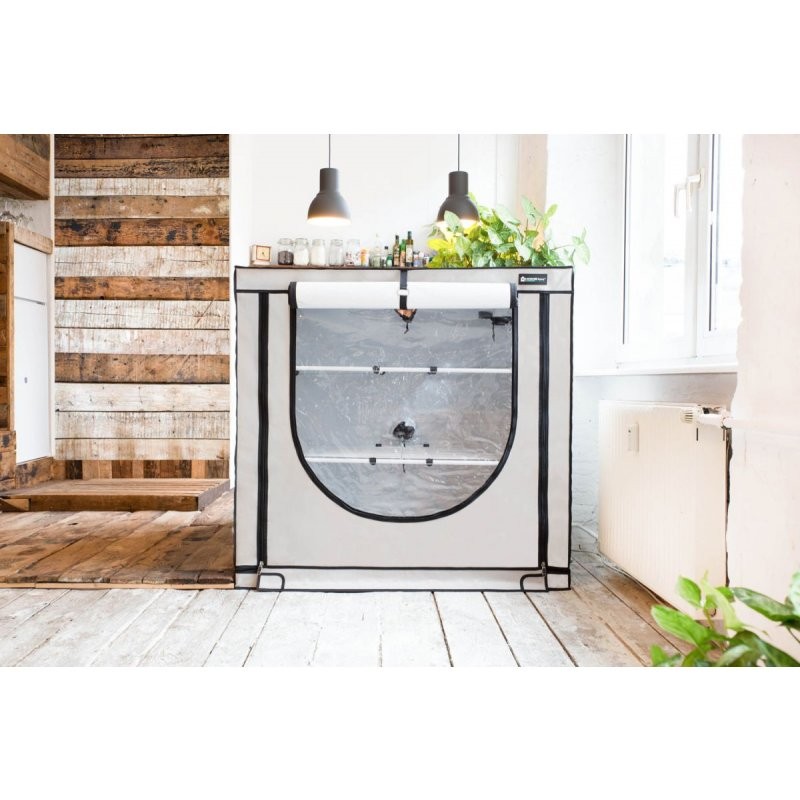 Nový stan na pěstování Homebox Vista Medium v béžové barvě a s rozměry 125x65x120 cm. Originální řešení pro pěstování většího počtu malých rostlin.