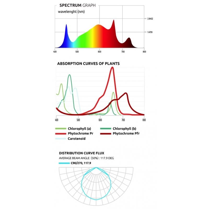 Řada Lumatek ATS 300W Pro 2,7 vytváří zcela rovnoměrné šíření světla na krátkou vzdálenost od plodin, a díky vyšší intenzitě světelného toku umožňuje mnohem lepší průnik mezi listy i u vícevrstvých kultivarů. Toto zařízení dokonale pokryje plochu 1x1 m pro kvetení a 1,2x1,2 m pro růst, aniž by vytvářelo hotspoty (místa se zvýšenou teplotou).