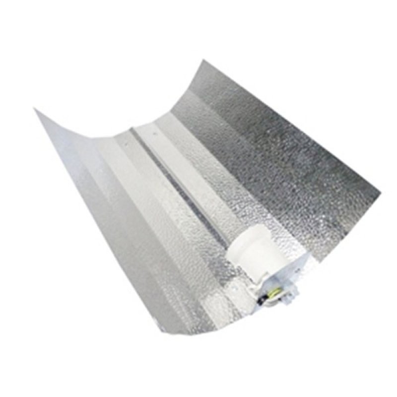 Original stínidlo s V prolisem pro lepší rozptyl světla. Povrch Hammer má vysokou odrazovost světla cca 90% (několikanásobně lepší než má např. Stucco). Stínidlo je komplet smontované a připravené k použití, pro všechny druhy výbojek od 250W až 1000W. Plocha osvícení je cca 1m2..
