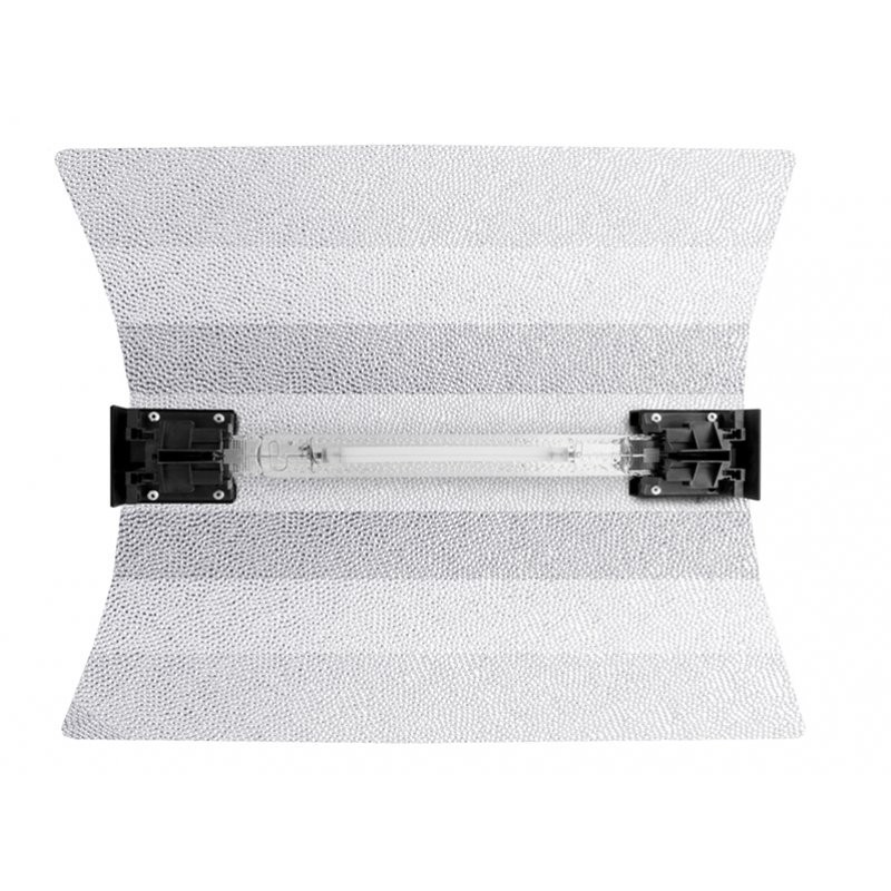 Stínidlo DOUBLE PRO DE, rozměr 47*39 cm, kompletní s objímkou pro double ended výbojky 600+1000W, zhotoveno s hliníku nejvyšší jakosti pro dosažení lepšího odrazu světla.