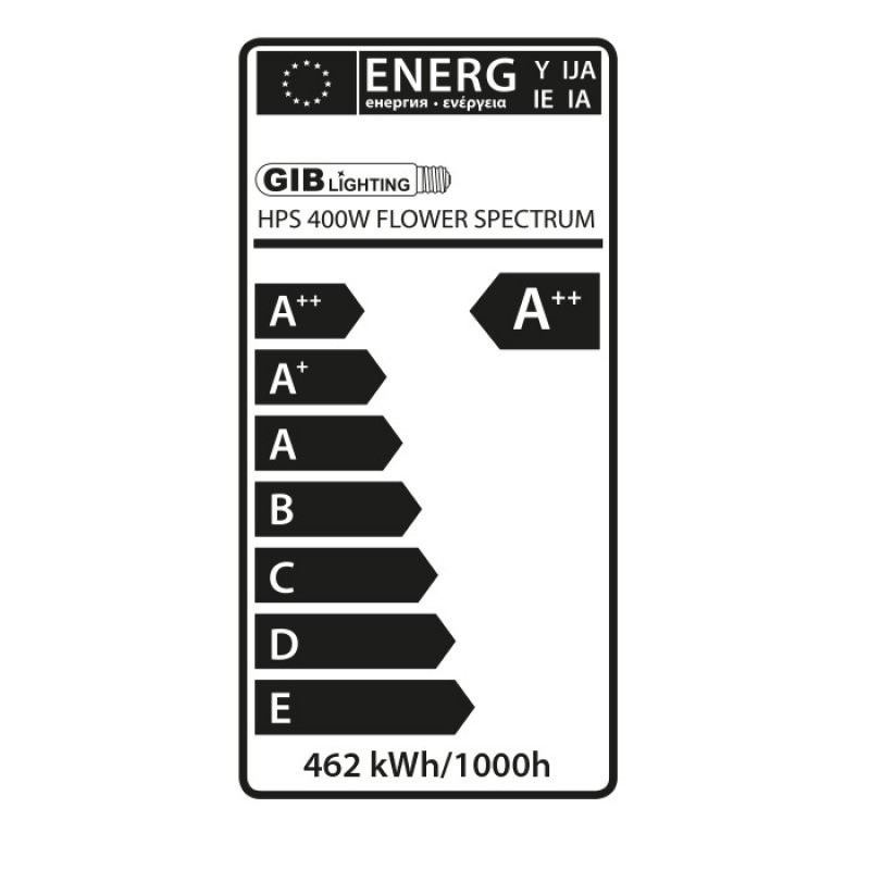 Tato nejvýkonnější 400W výbojka HPS z řady GIB Flower Spectrum startuje za čtyři minuty, po restartu za dvě. Je kompatibilní s většinou druhů stínidel s objímkami E40/45.