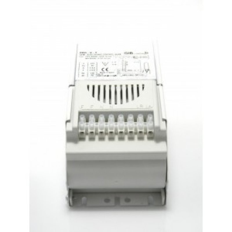 Bílý předřadník obsahuje tlumivku, kondenzátor, startér, pojistku a svorkovnici pro připojení vstupního napětí a výbojky. Zabudovaný termostat.