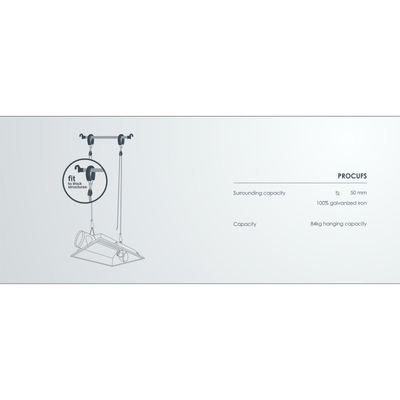 Garden High Pro ProCuf je odolný a pevný plastový držák na uchycení těžkých závěsných systémů na trubkách o průměru 5cm. Párová nosnost až 84 kilogramů!