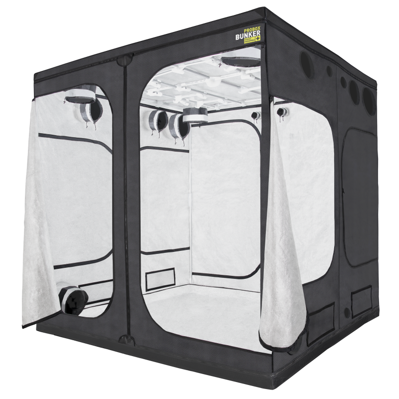 PROBOX BUNKER 300XXL - cenově atraktivní mega velký stan na indoor kultivaci rostlin! Mezi hlavní přednosti tohoto boxu patří spolehlivá vnitřní odrazová fólie Premium Mylar s odrazovostí 97%, odolné zipy a kvalitní vnější textilie NYLON 600D. Další výhodou je lehká hliníková konstrukce s nosností až 54 kilogramů.