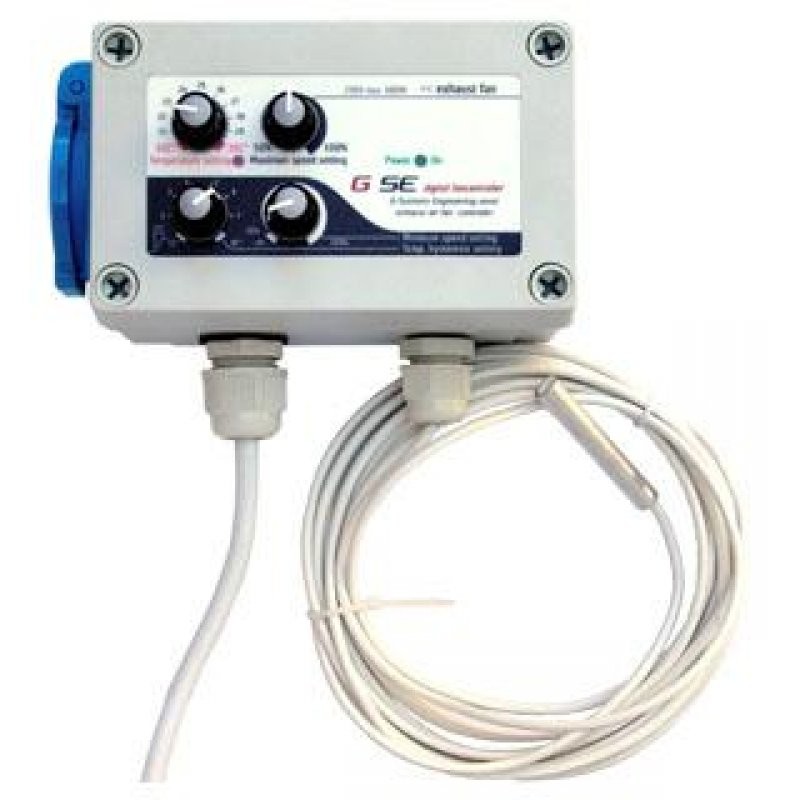 5ampérový GSE regulátor teploty, minimální a maximální rychlosti pro ventilátory s vyšším příkonem. Možnost nastavení hystereze.