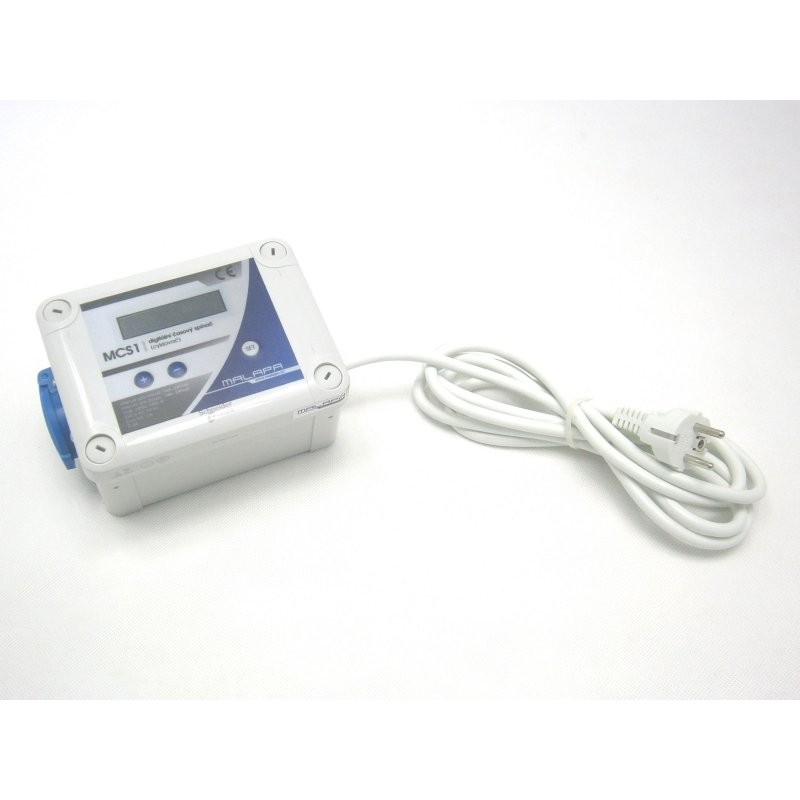 Elektrické digitální spínací hodiny Malapa MCS1 pro pravidelné a nebo cyklické spínání a vypínání spotřebičů podle nastaveného času. Max. příkon 3000W.