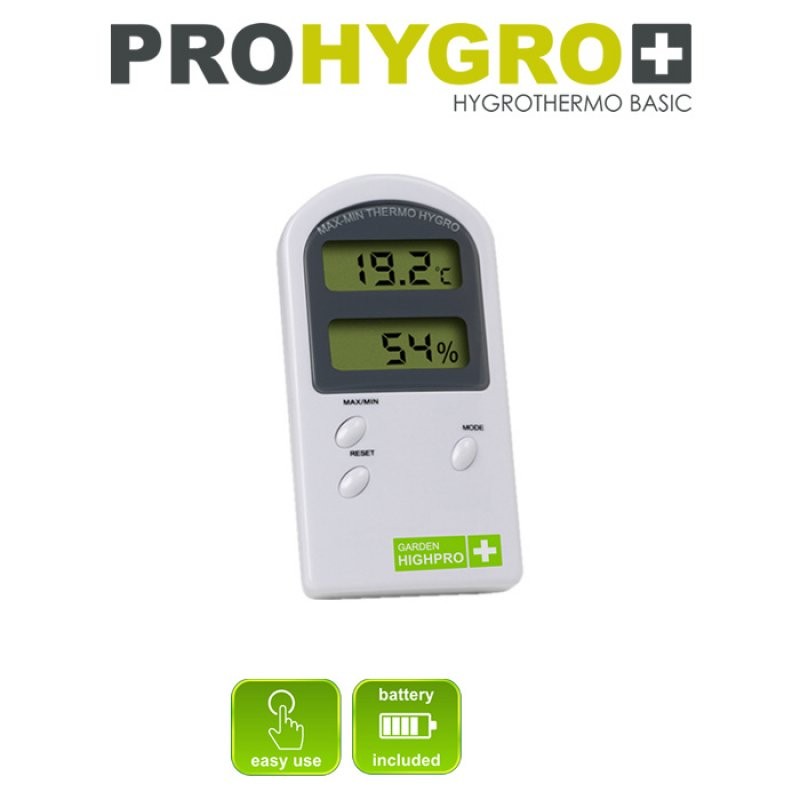 Digitální Thermo hygro metr BASIC bez sondy je určen indoor pěstitelům, kteří dbají na detaily. Přístroj umožňuje přepínání mezi kontinentálními a angloamerickými jednotkami. Rozsah měřených teplot 0°-50° (32°-122° F) a snímané vlhkosti 25%-90%. K provozu stačí jedna 1,5 Voltová AAA baterie, která je součástí balení.