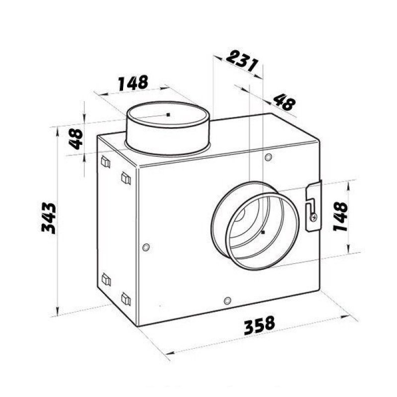 Zaboxovaný potrubní ventilátor Vents KSA 150 U s regulací teploty a otáček. Výkon 730m3/h, příruba 150mm.