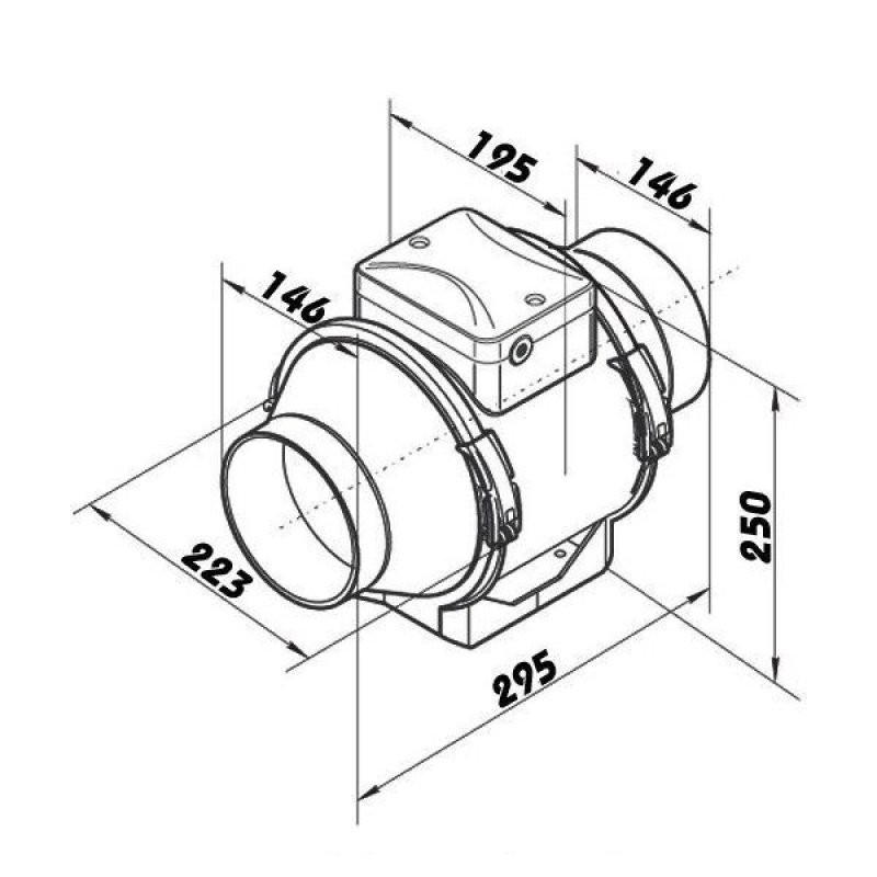 Plastový potrubní ventilátor TT 150 s dvourychlostním jednofázovým motorem s kuličkovým ložiskem. Nízká hmotnost, minimální hlučnost.