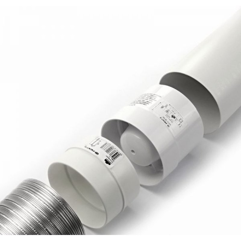Nejmenší potrubní ventilátor VKO 100 z ABS plastu. Nízká spotřeba, ruční ovládání, vhodný do velmi malých prostor. Průměr potrubí 105mm. D=100, D1=104 mm.