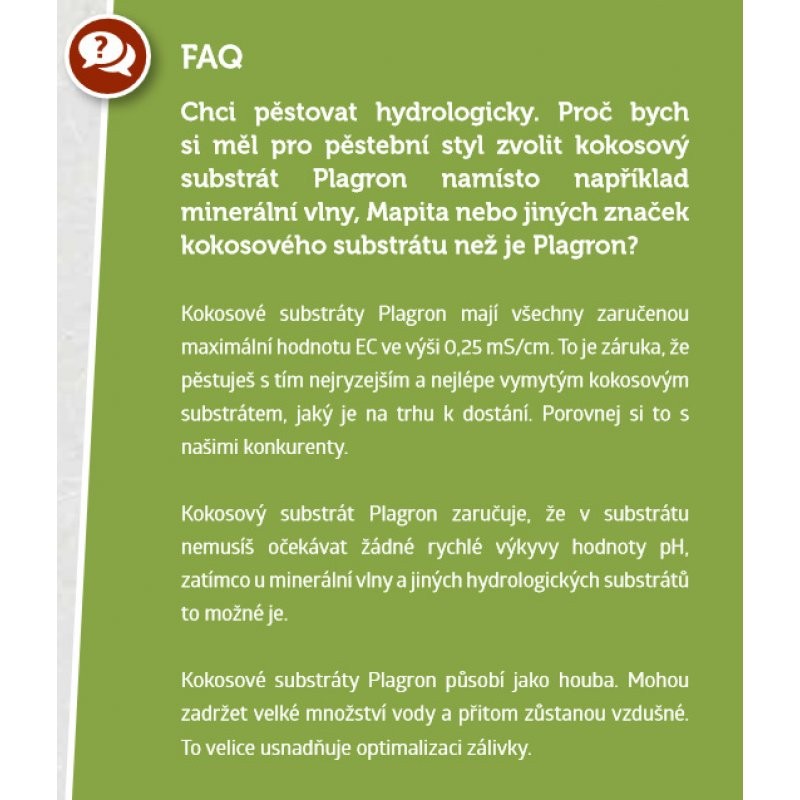 Balení obsahuje dvě litrové lahve Plagron Cocos A a Plagron Cocos B.Balení se skládá ze dvou 5 litrových lahví.
